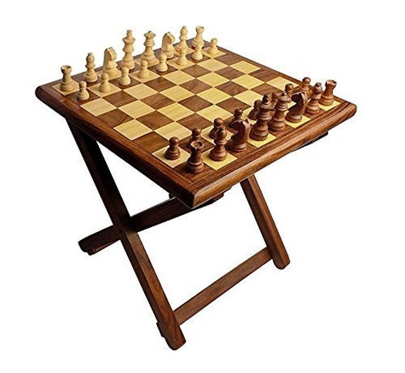 Handmatehandmade Wooden Table Chess Foldable With Storage Box 12 Inch In Multicolor Tournament Chess Table Etsy